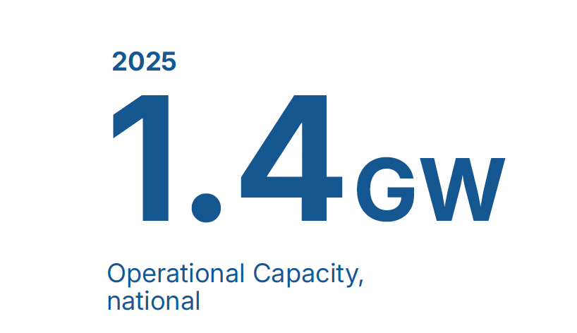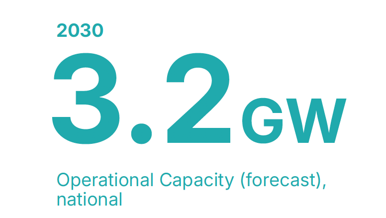 - 3.2GW operational capacity within Australia by 2030, a near 2GW rise.